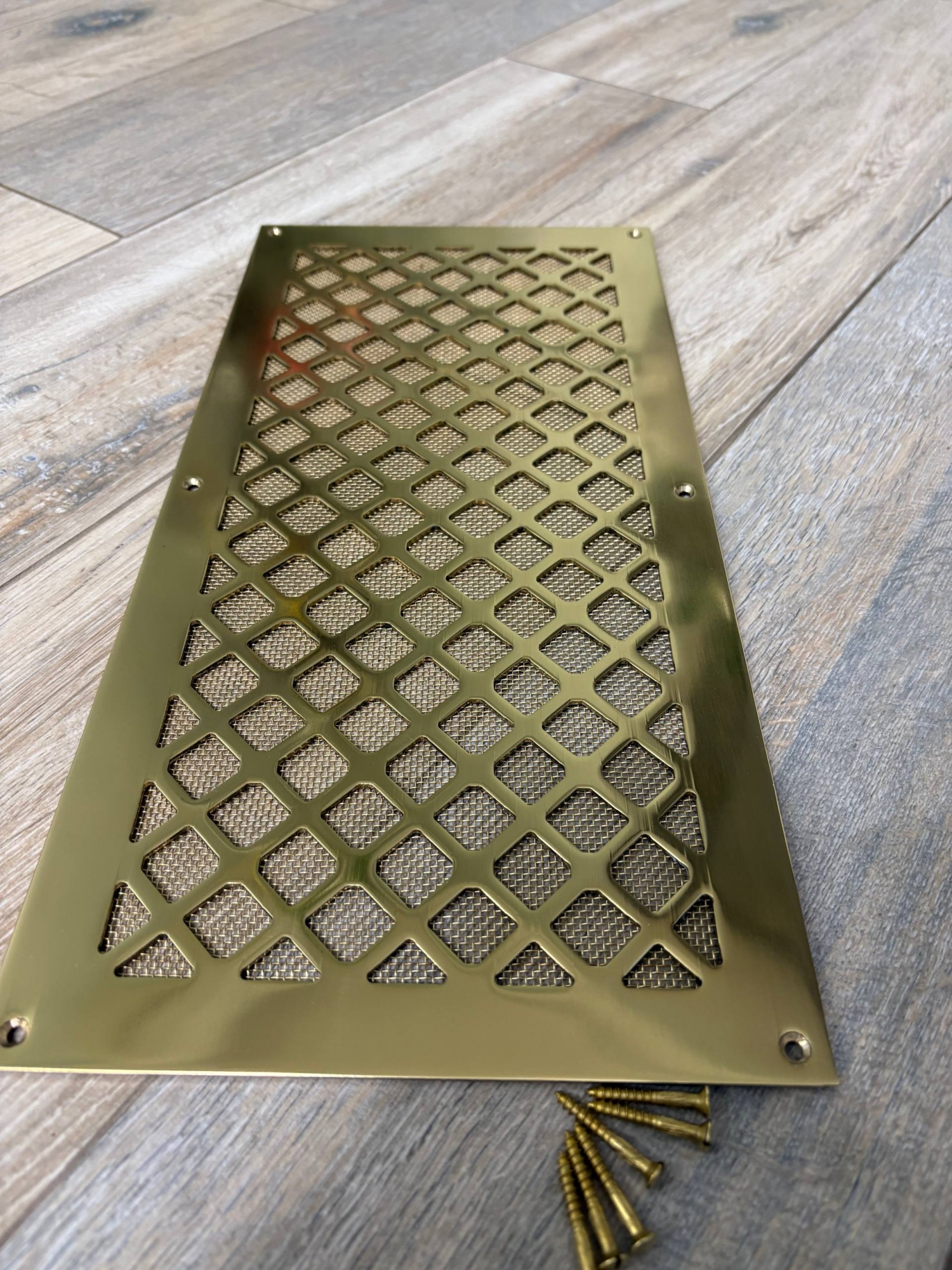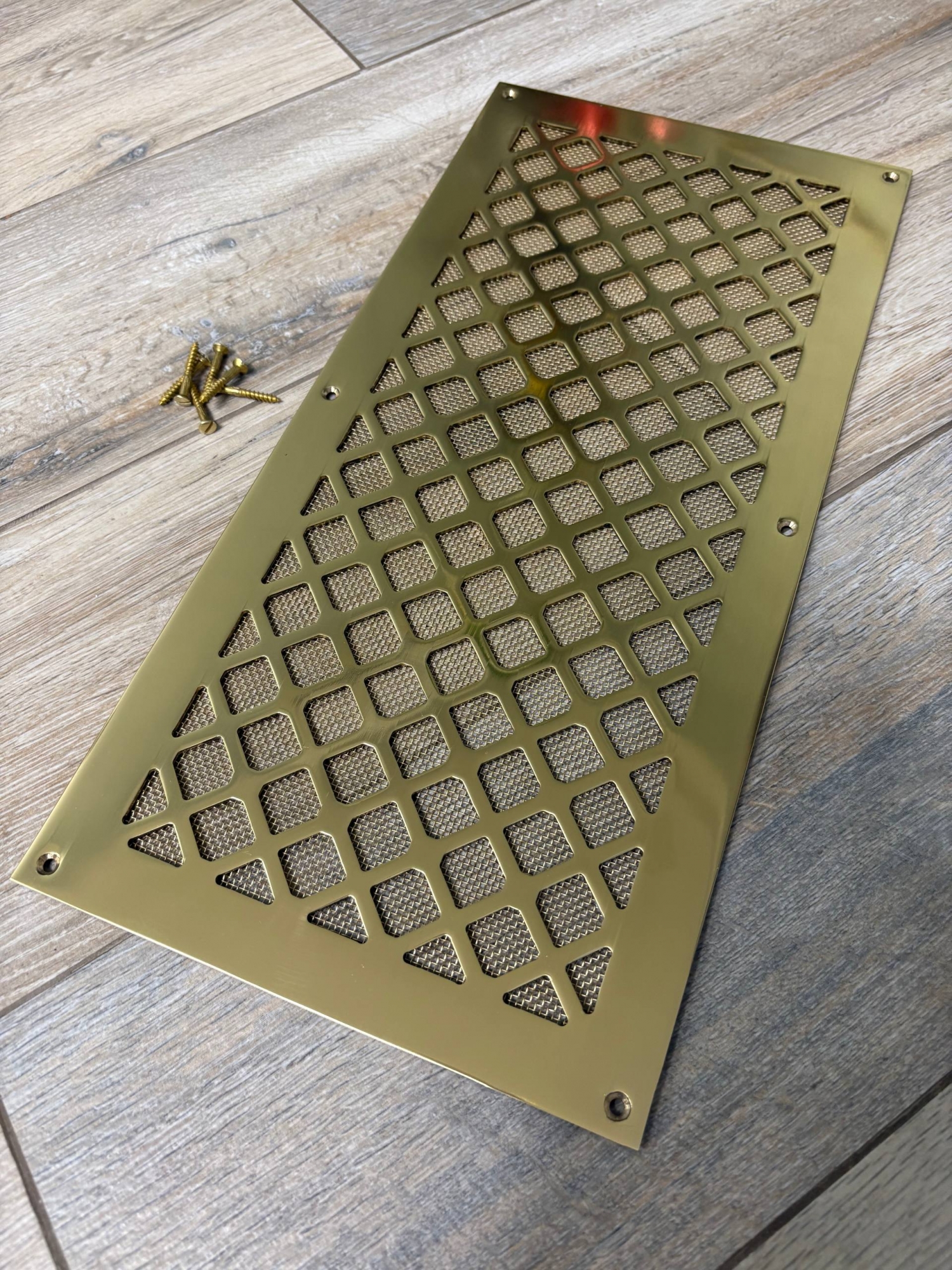 Вентиляционная решётка латунная полированная с сеточкой и шурупами ЛР18 400х200 в интернет-магазине «ВЕНТФОМ». Заказать с доставкой! Тел.: +7 (925) 201-33-89.